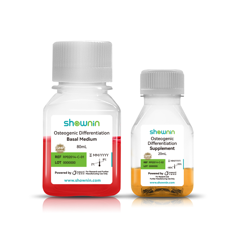 Shownin hMSC Osteogenic Differentiation Kit provides high-efficient osteogenic differentiation on hMSCs.