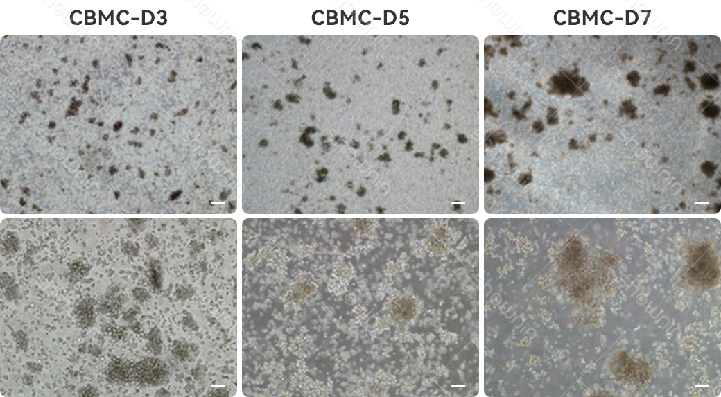 NkVita Immune Cell Serum-Free Medium, used in combination with Shownin NK Expansion Kit (RP03030), for umbilical cord blood NK cell expansion. Cell images are shown.