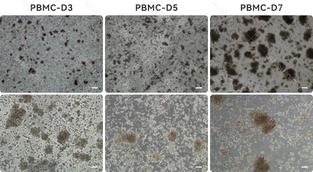 NkVita Immune Cell Serum-Free Medium, used in combination with Shownin NK Expansion Kit (RP03030), for peripheral blood NK cell expansion. Cell images are shown. Scale bar: 200 μm.